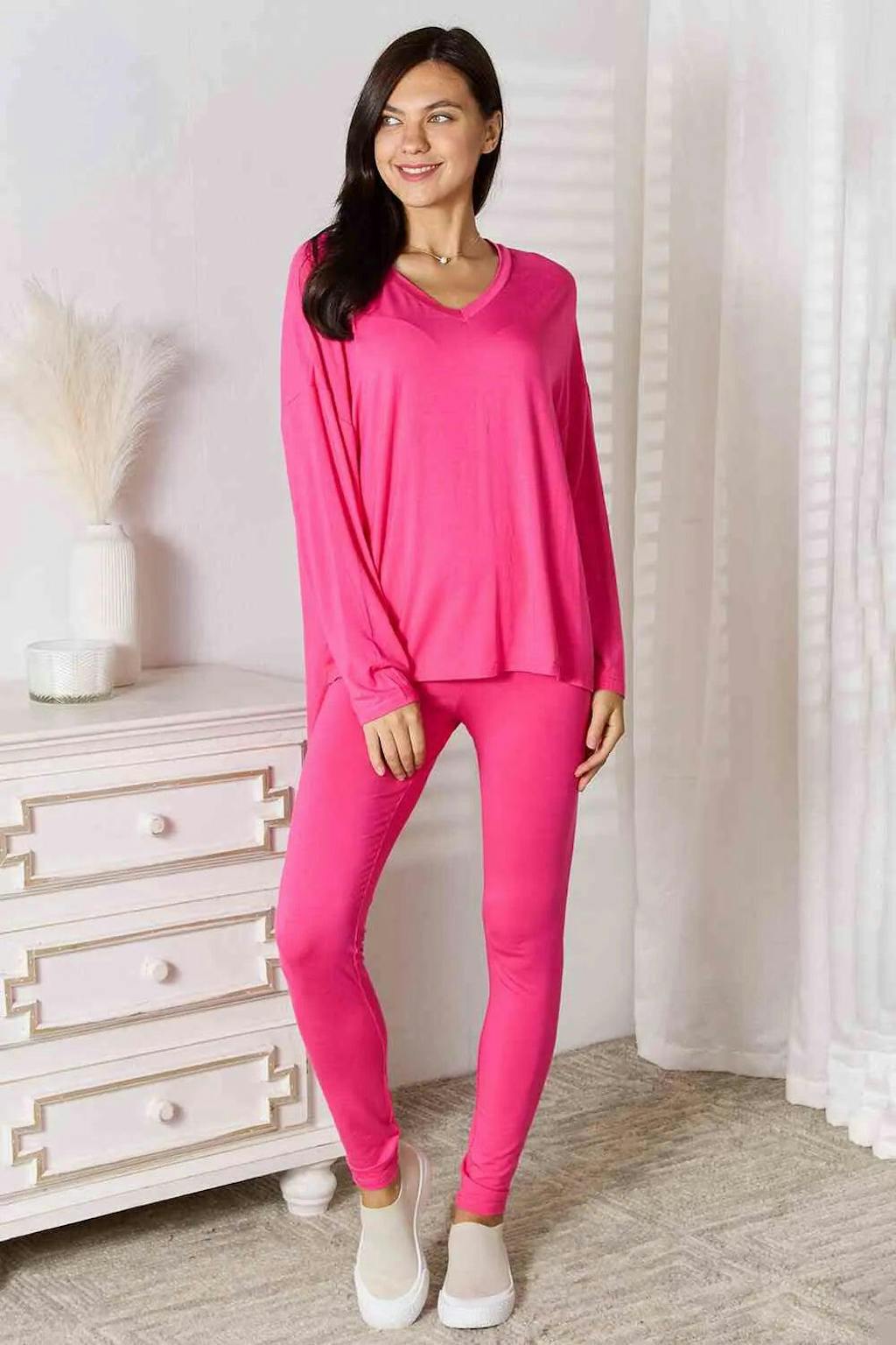 Basic Bae Full Size V-Neck Soft Rayon Long Sleeve Top and Pants Lounge Set