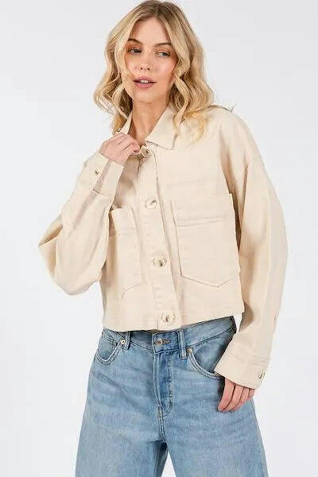The Button Down Cropped Denim Jacket with Patch Pockets is a trendy and versatile outerwear piece that combines classic style with modern details. This jacket features a button-down front for a timeless look, while the cropped silhouette adds a contemporary touch. The patch pockets add a functional and stylish element to the jacket, providing extra storage space and visual interest. Perfect for layering over a variety of outfits, this denim jacket is a must-have staple for your wardrobe. Stay on-trend and effortlessly cool with this chic and stylish cropped denim jacket.